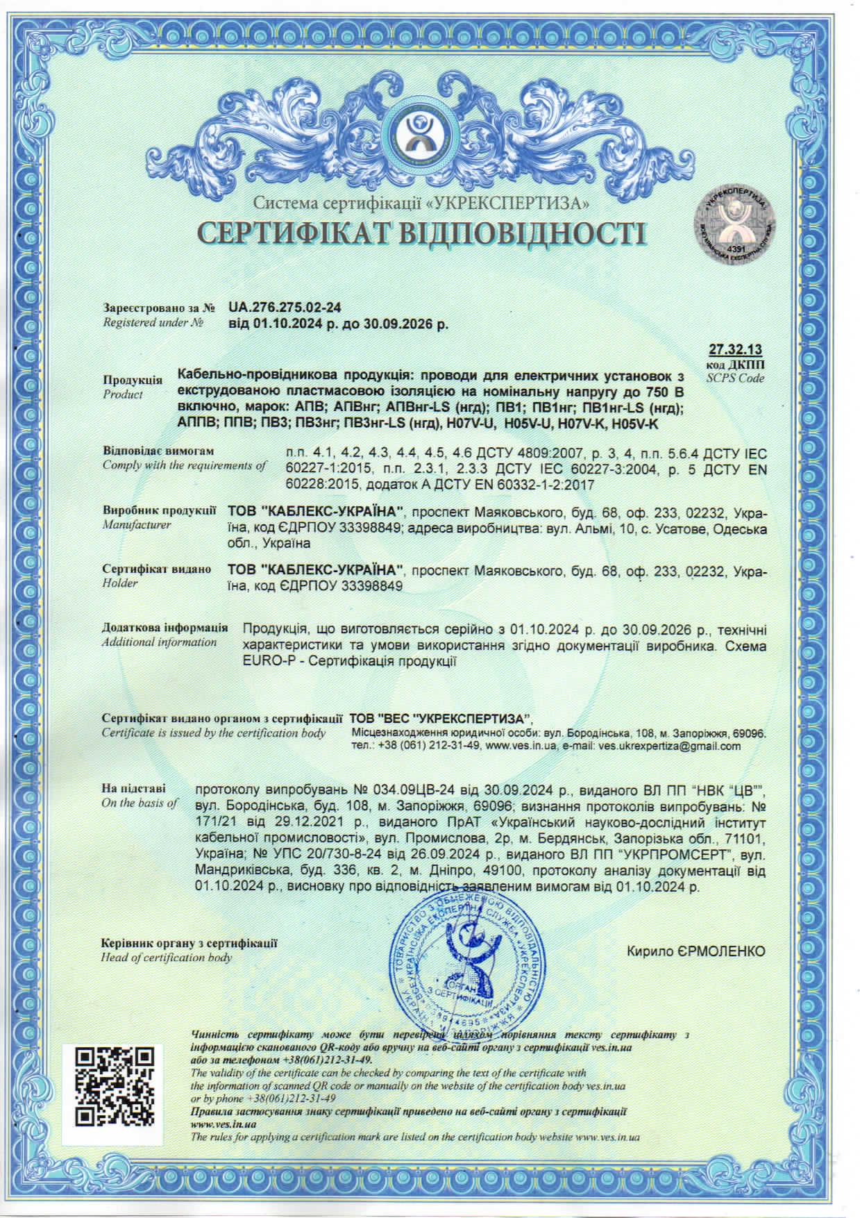 АПВ, АПВнг, АПВнг-LS ТУ У 27.3-33398849-003:2021, ДСТУ IEC 60227-3, ДСТУ EN 50525-2-31